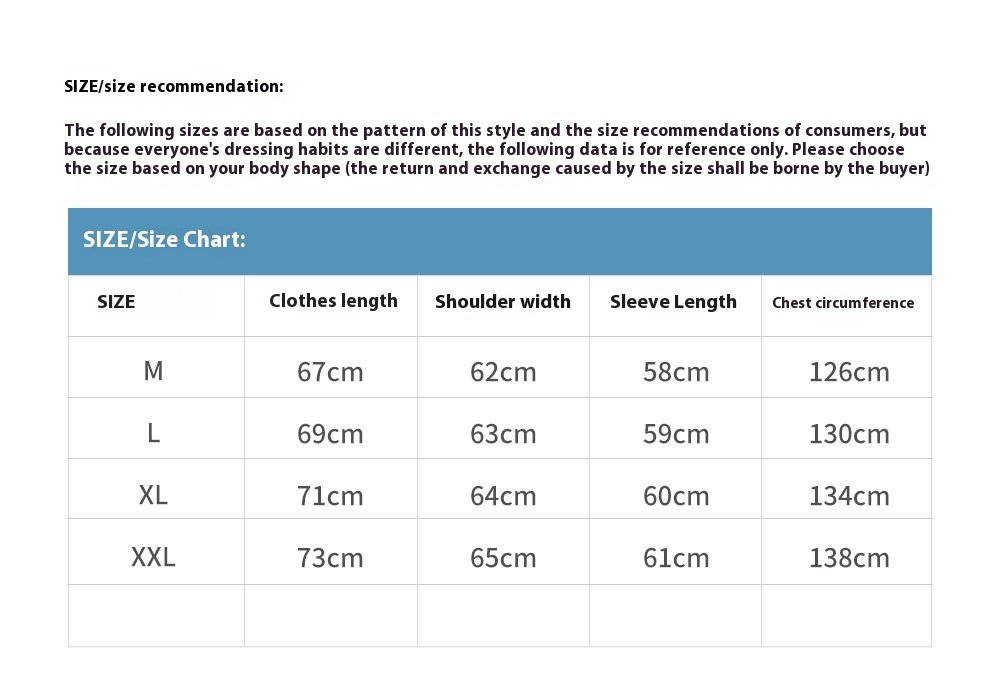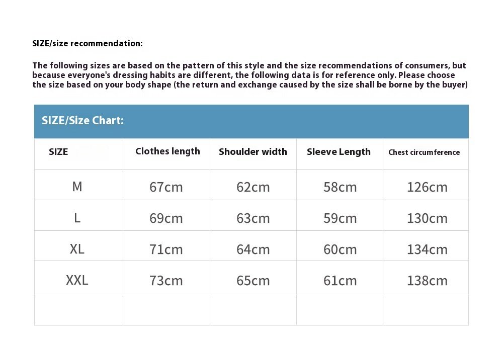 Size: M,L,XL,XXL