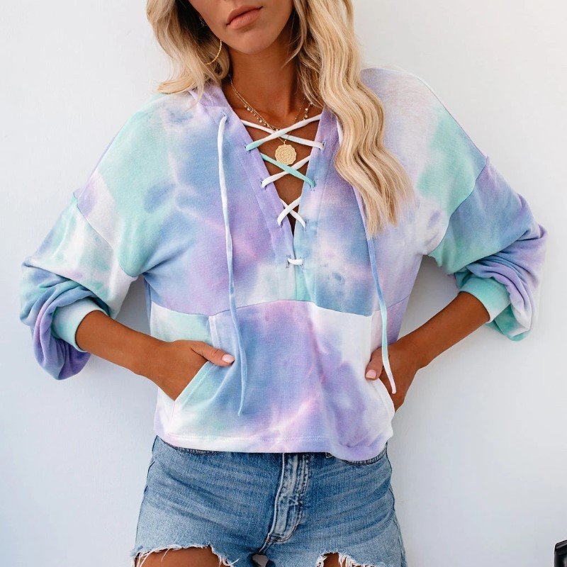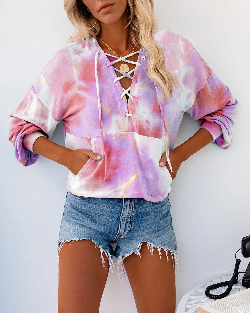 Tie-dye Printed Long-sleeved Hoodie With Drawstring Hoodie