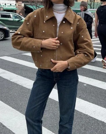 The fabric texture of the short jacket is very good,the circular patch design is very special, I wear it to shopping,it’s cool, making it very comfortable to wear