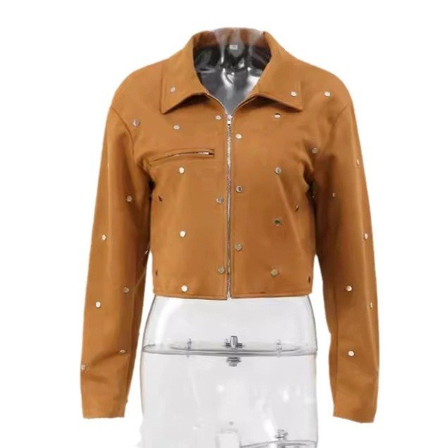 Color: studded suede coat-Brown