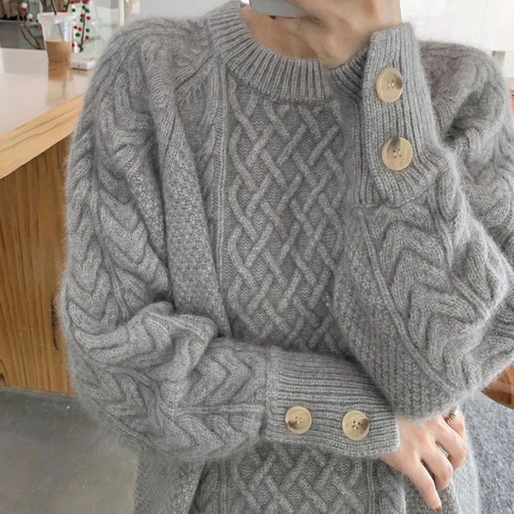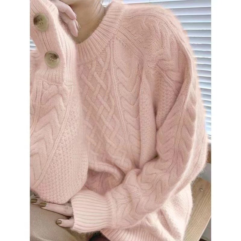 Women’s Clothing Loose Feeling Retro Lazy Style Round Neck Base Sweater